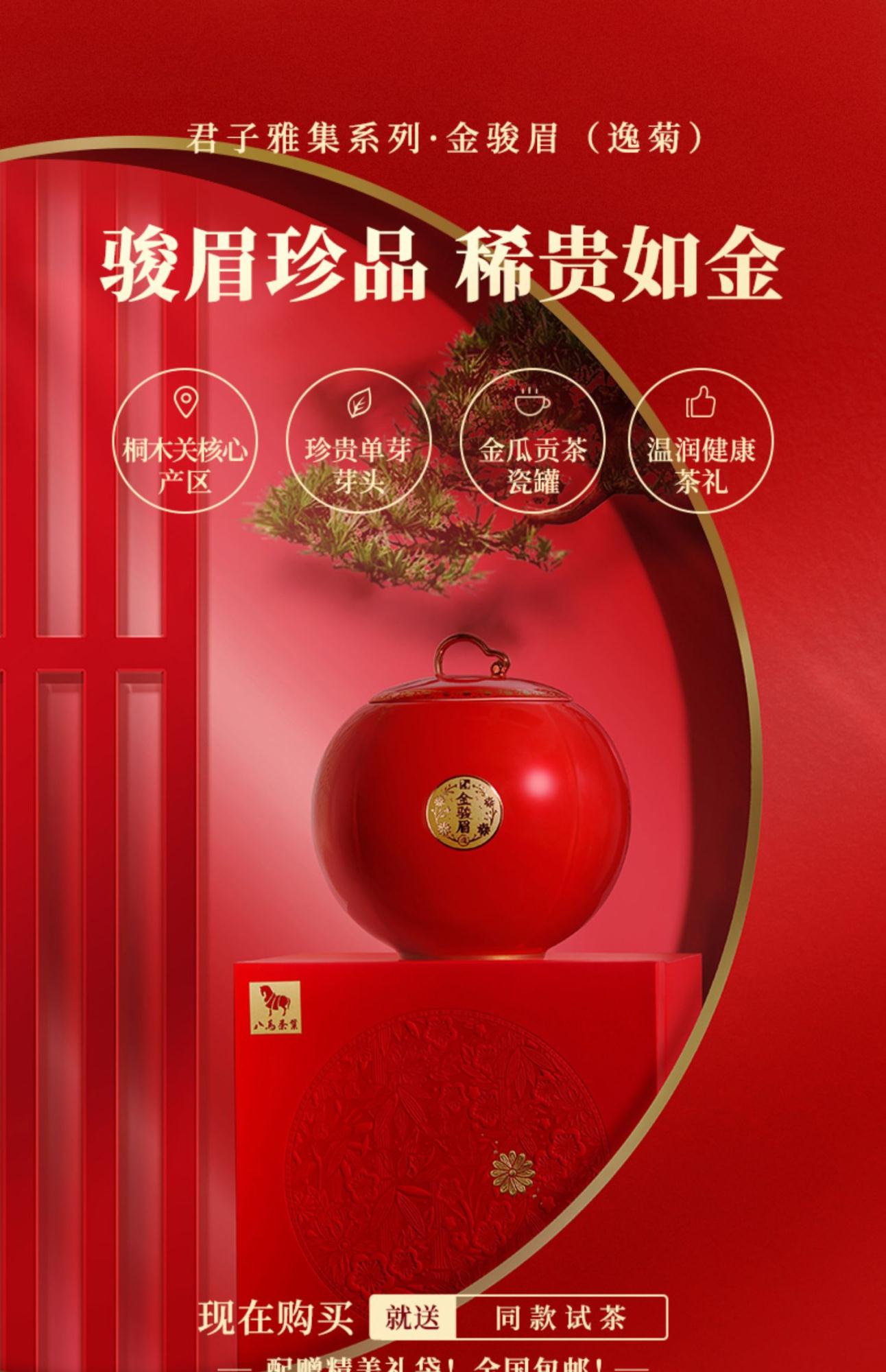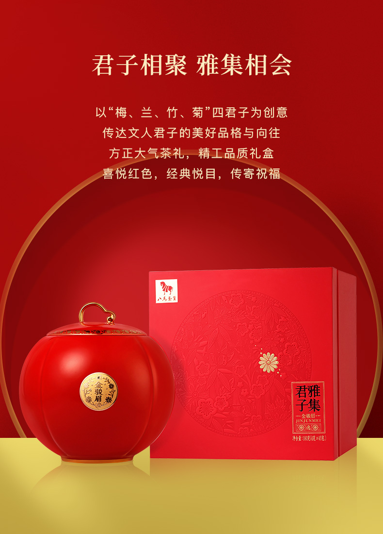 八马茶叶 君子雅集特级武夷金骏眉红茶瓷罐红茶高端茶礼盒装180g