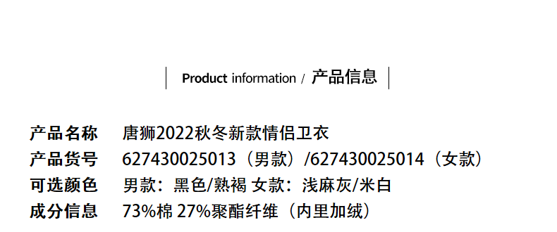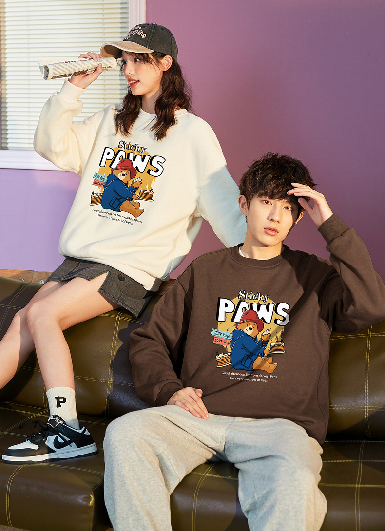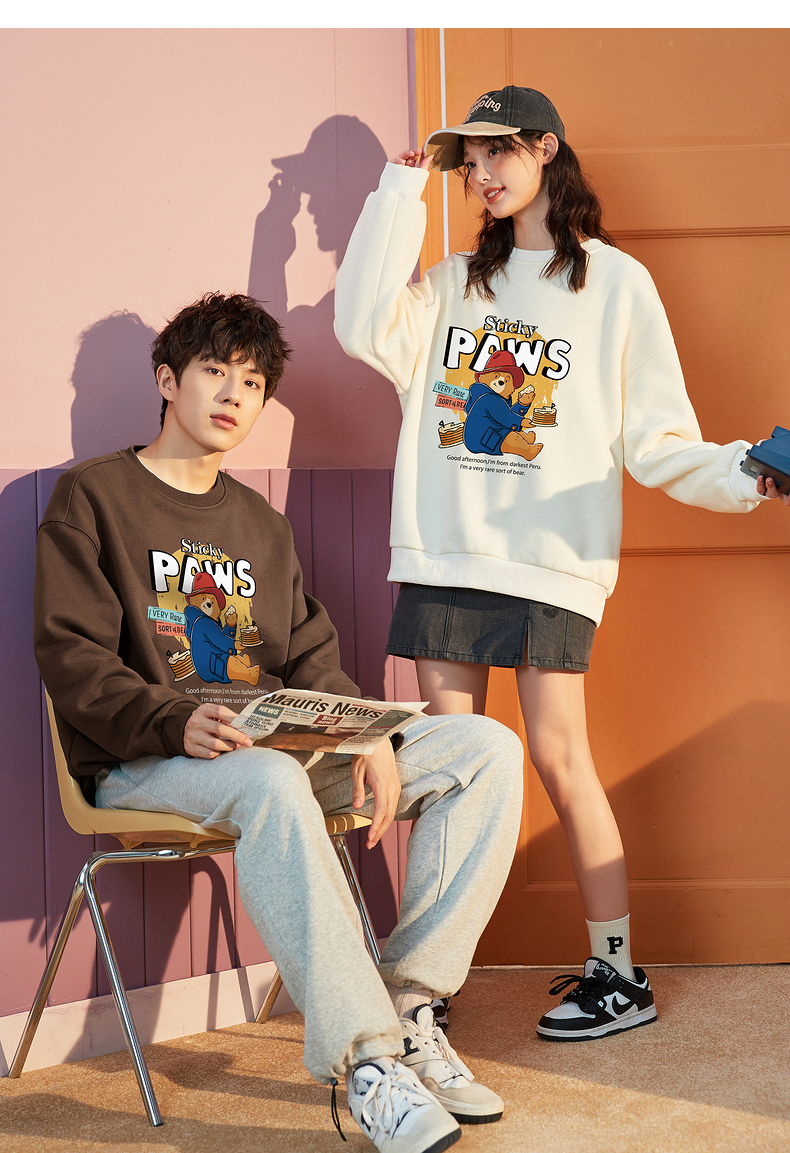唐狮2022秋冬新款情侣卫衣圆领学院风加绒情侣装潮牌