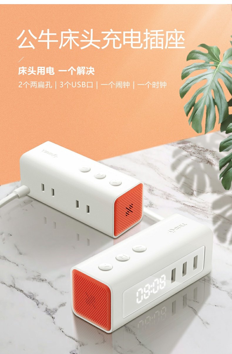 公牛插座usb插座床头充电插排插线板接线板多功能家用闹钟定时