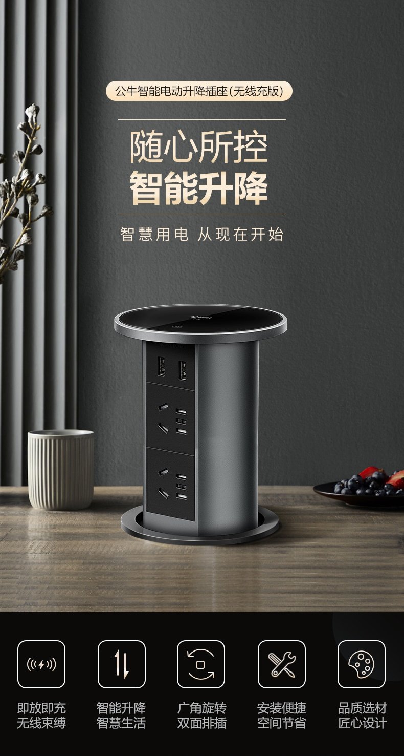 公牛官方插座升降插座嵌入式厨房自动智能插排隐藏桌面